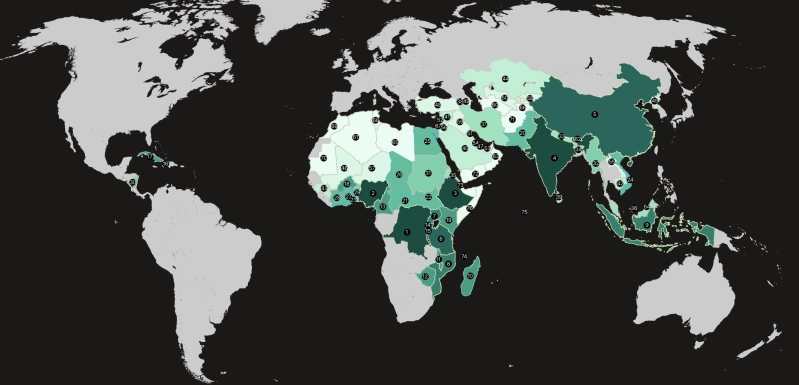 Map shows the nations with the greatest Bible shortages, including the Democratic Republic of Congo, Nigeria, Ethiopia, India, and China, where millions of Christians still await a copy of Scripture. Bible Access Initiative